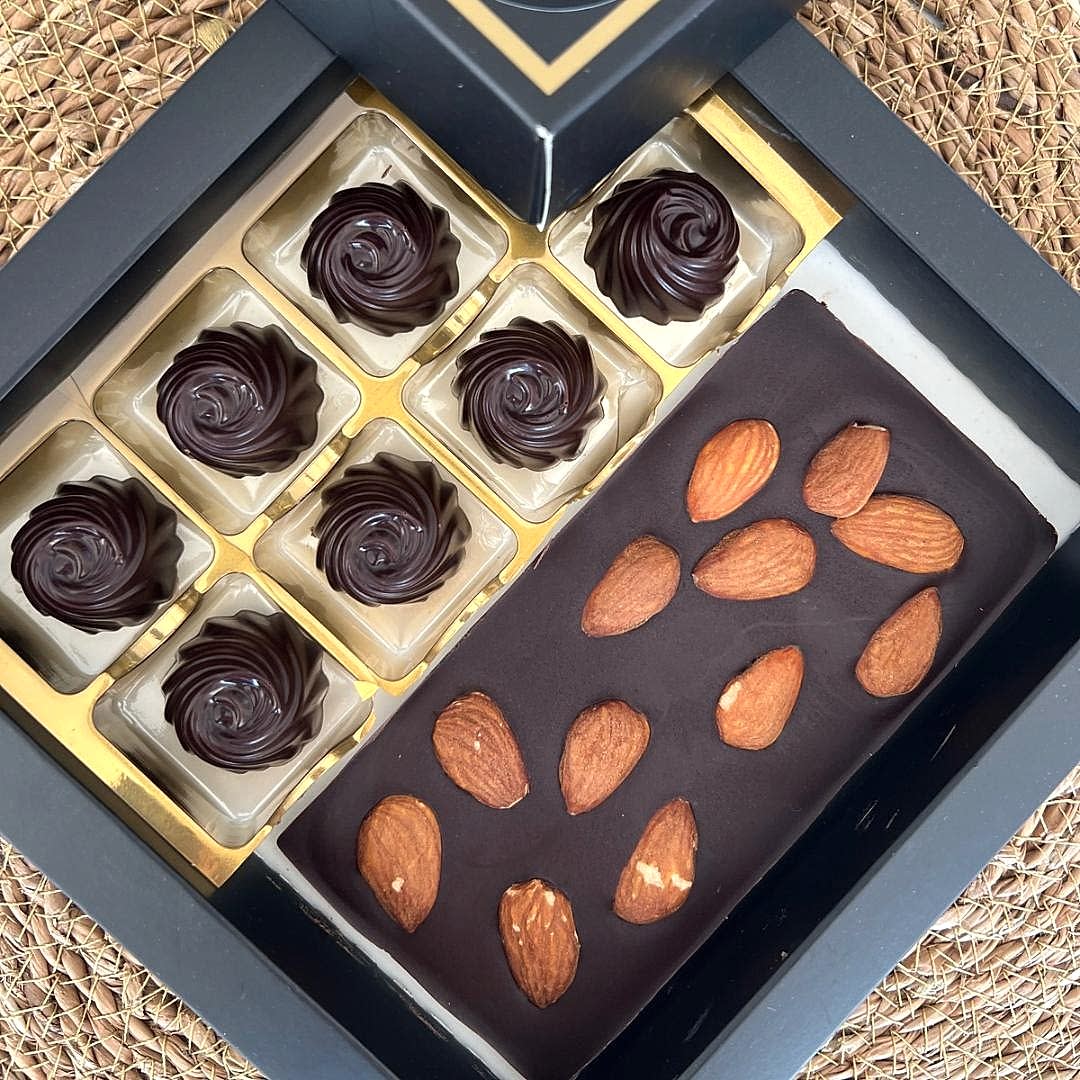 Bademin kendine has zengin tadı ve kıtır dokusu, Bademli Çikolata Tablet Bar ve Sade Lezzet Kutusu içerisinde sade çikolata ile mükemmel bir uyum yakalar. Bu kutu, bademli çikolata severler için eşsiz bir tat deneyimi sunar. Bademin hafif tuzlu ve yoğun lezzeti, sade çikolatanın kremsi yapısı ile dengelenir.